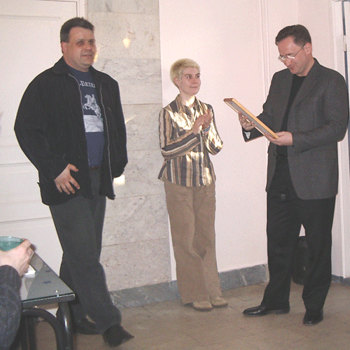"Авторадио - Санкт-Петербург" получает диплом "За пропаганду прав потребителя". Вручает президент Регионального центра по соблюдению прав потребителей Константин Екимов.